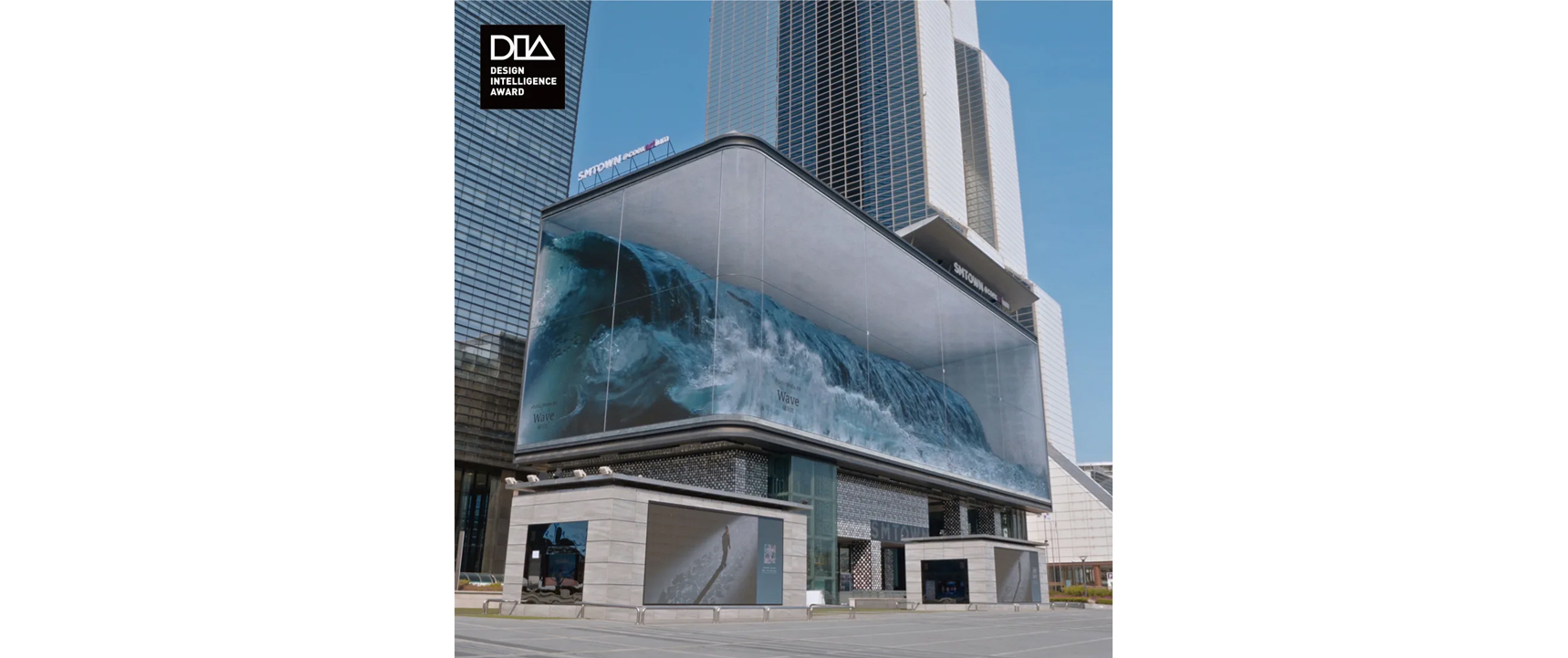 “WAVE”位于韓國首爾三成洞,是在81M寬、20M高的巨型L形LED顯示屏上,