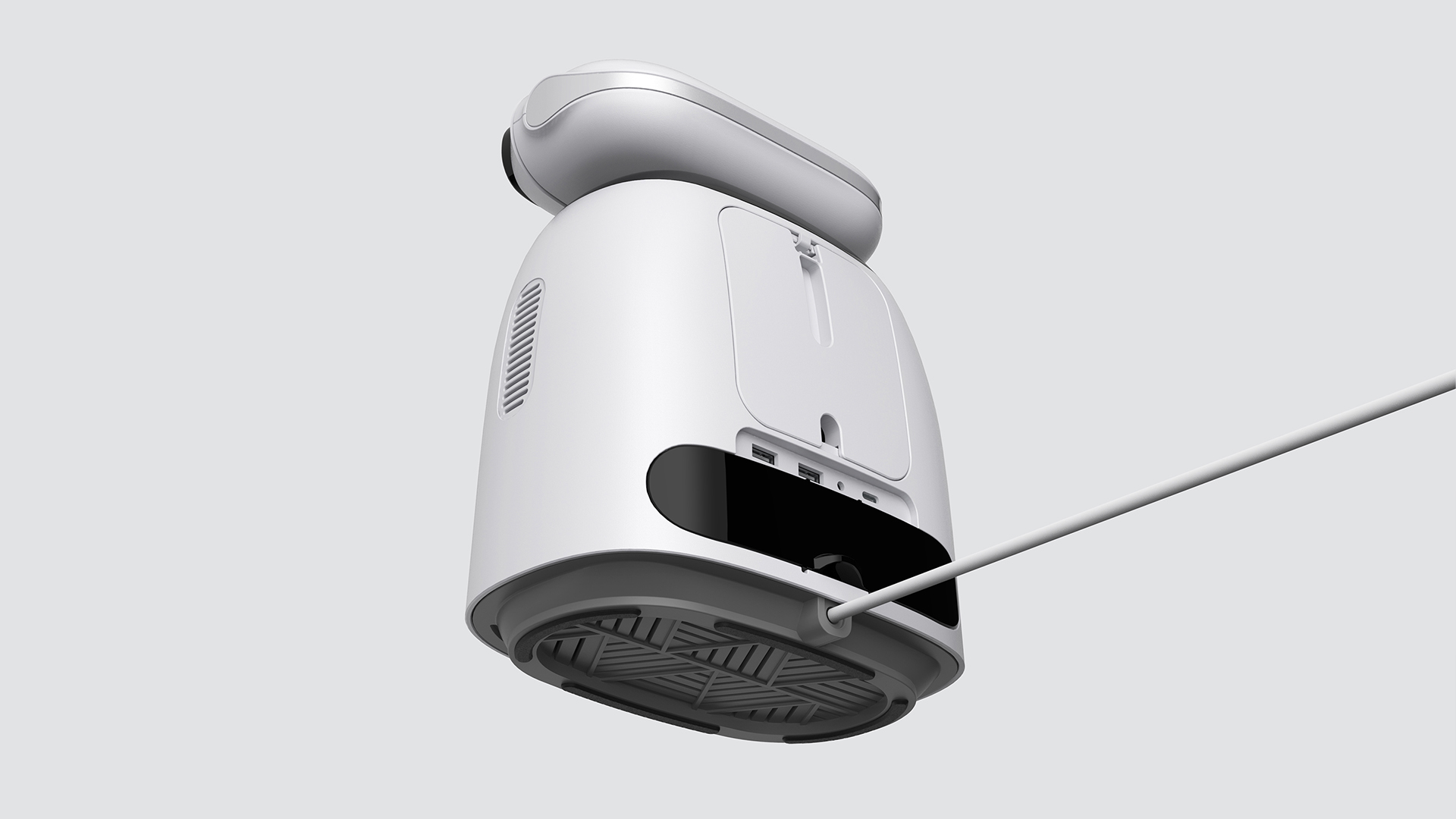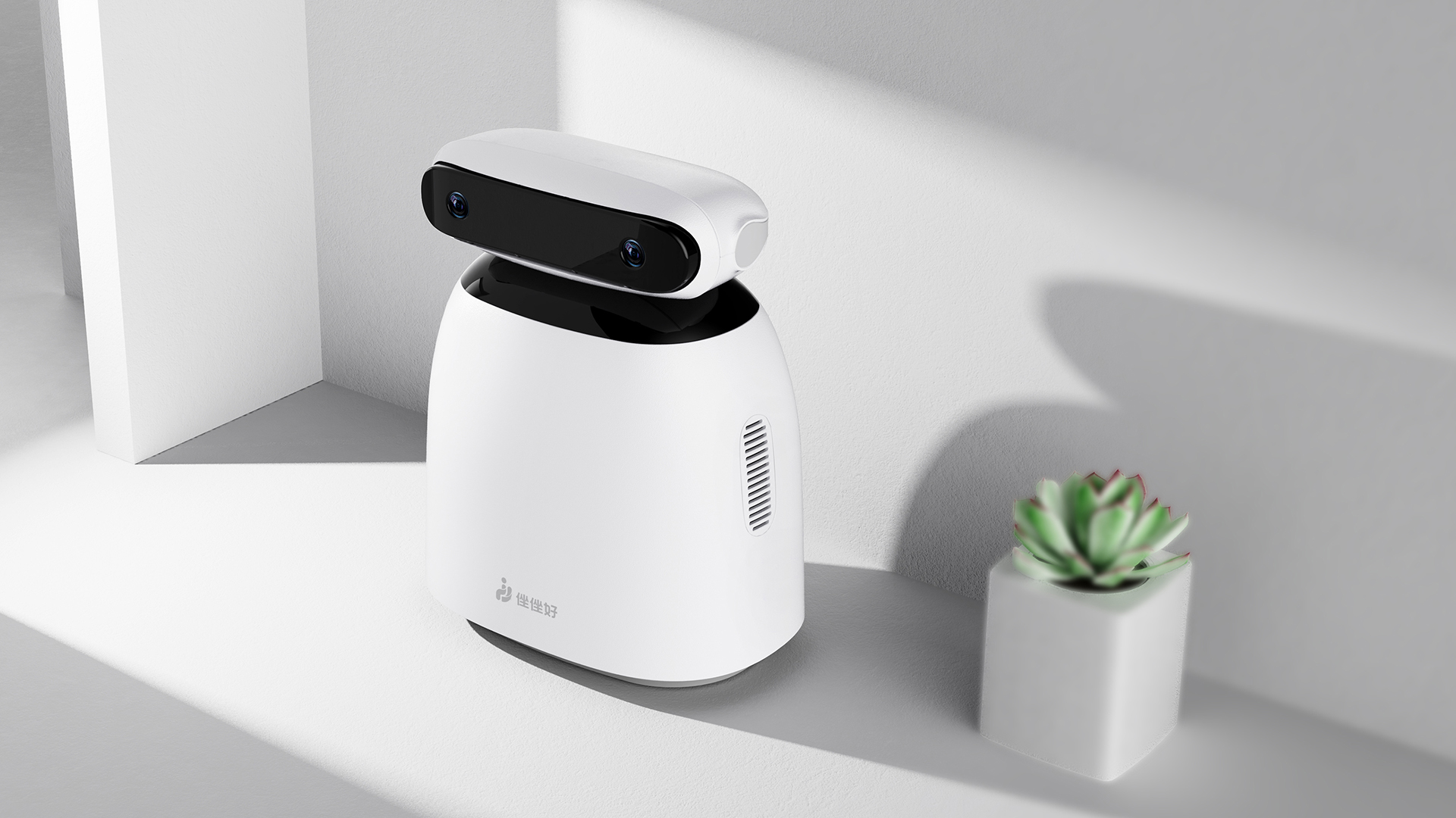 細節上,攝像頭部位裝飾件采取流線造型搭配金屬質感材質,底部隱藏式呼吸燈體現工作情況,塑造智能產品科技氛圍。
