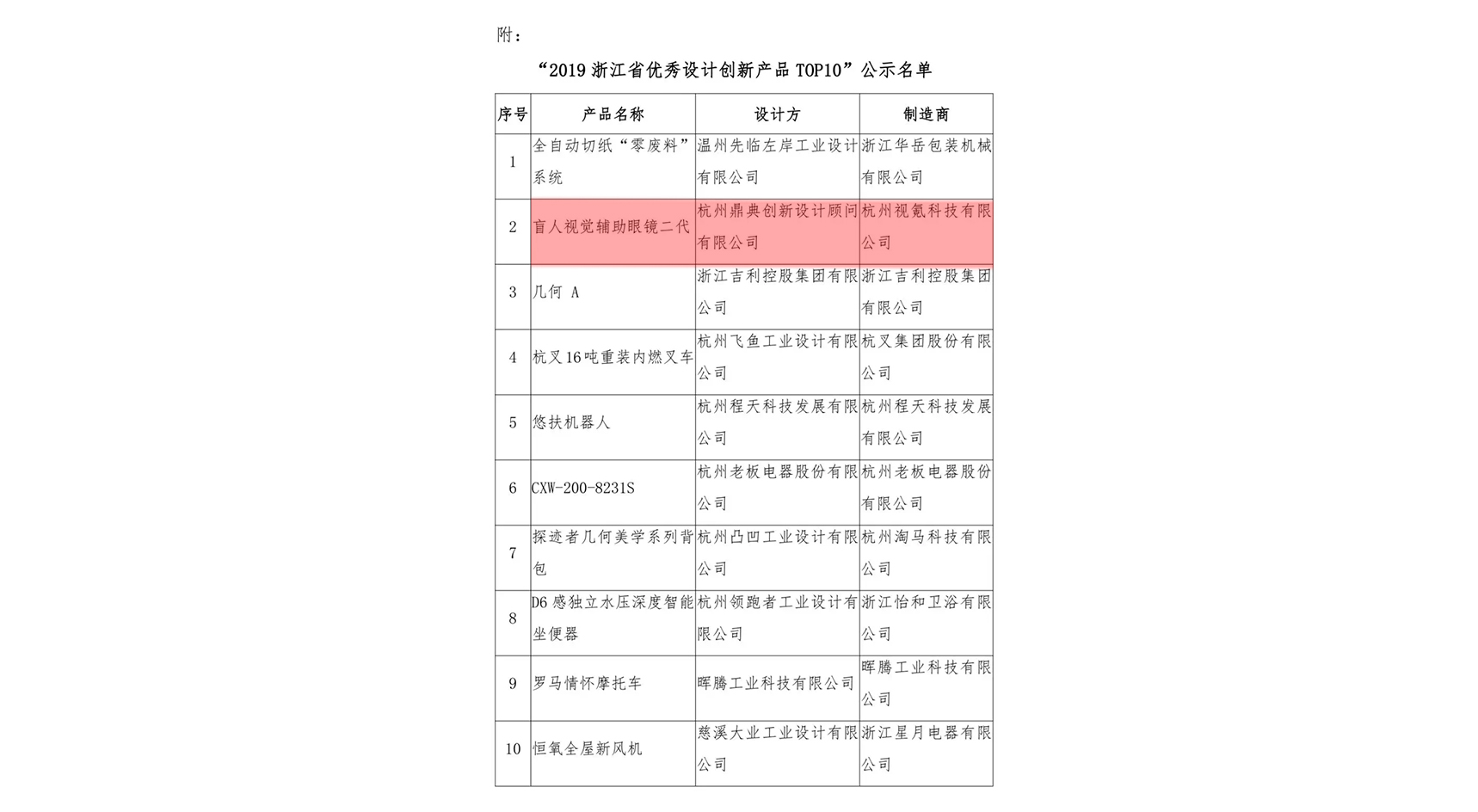 杭州鼎典創造體設計榮獲“2019浙江省優秀設計創新產品” TOP10