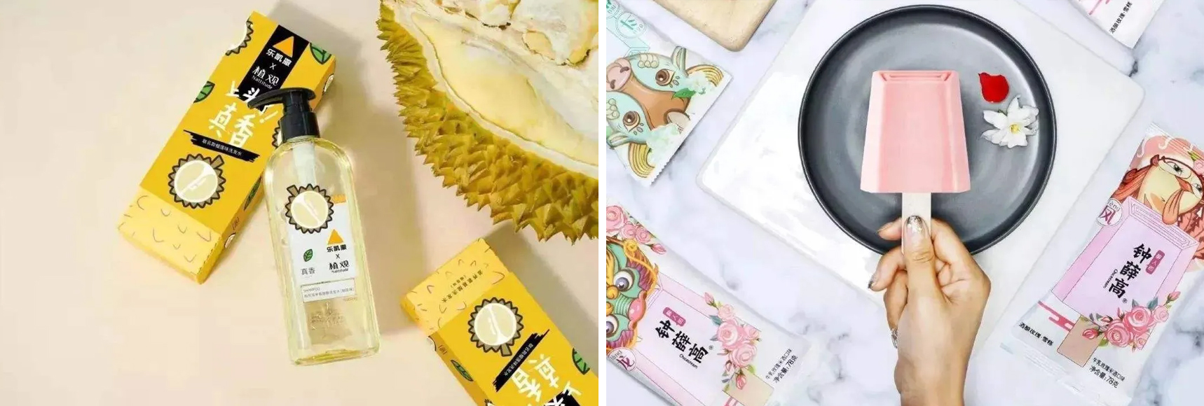 從產(chǎn)品形式來看,產(chǎn)品形態(tài)、包裝創(chuàng)意、產(chǎn)品命名、顏色搭配,乃至海報設(shè)計、周邊配套、宣傳圖片、視頻等一切可以接觸的事物,都可以進行“顏值改造”,以形成風(fēng)格化、主體化的美學(xué)體驗,誘發(fā)買家拍照上傳。