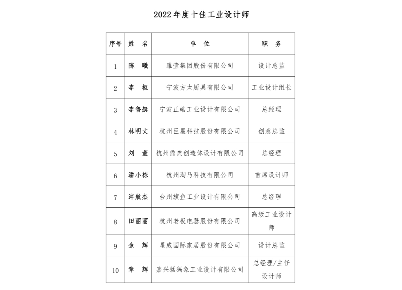 經(jīng)5位專家評審,最終評選出2022年度十佳工業(yè)設計企業(yè)、十佳工業(yè)設計師、工業(yè)設計推進者,